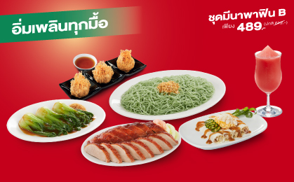 ชุดมีนาพาฟิน B ราคา 489 บาท (จากปกติ 612 บาท) เมนูในเซต : เป็ดย่าง เล็ก บะหมี่หยก ใหญ่ ฮ่องเต้น้อยน้ำมันหอย เล็ก เผือกทอด 3 ชิ้น ปอเปี๊ยะสด น้ำแตงโมปั่น เงื่อนไขการใช้สิทธิ์ : ระยะเวลาโปรโมชั่น และการใช้สิทธิ์วันที่ 1 มีนาคม 2569 – 31 มีนาคม 2569 ใช้ได้เฉพาะช่องทางโฮมเดลิเวอรี่: เว็บไซต์ www.MK1642.com, Call Center 1642 (Delivery และ Online Self Pick-up) ไม่สามารถใช้ร่วมกับบัตรสมาชิก หรือส่วนลดอื่นๆได้ ไม่สามารถแลก เปลี่ยน โอน หรือทอนเป็นเงินสดได้ บริษัทขอสงวนสิทธิ์ในการเปลี่ยนแปลงเงื่อนไขโดยไม่ต้องแจ้งให้ทราบล่วงหน้า