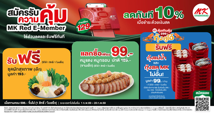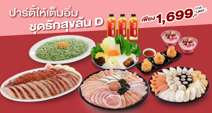 เว็บไซต์นี้มีการจัดเก็บคุกกี้เพื่อการใช้งานเว็บไซต์ที่ดีขึ้น บริษัท เอ็มเค เรสโตรองต์ กรุ๊ป จำกัด (มหาชน) และบริษัทย่อย ขอความยินยอมท่านในการเก็บรวบรวม ประมวลผล และ/หรือเปิดเผยข้อมูลเกี่ยวกับการเข้าเยี่ยมชมและการใช้งานเว็บไซต์ รวมถึงข้อมูลส่วนบุคคลของผู้เข้าใช้บริการ รายละเอียดเพิ่มเติม นโยบายการใช้คุกกี้