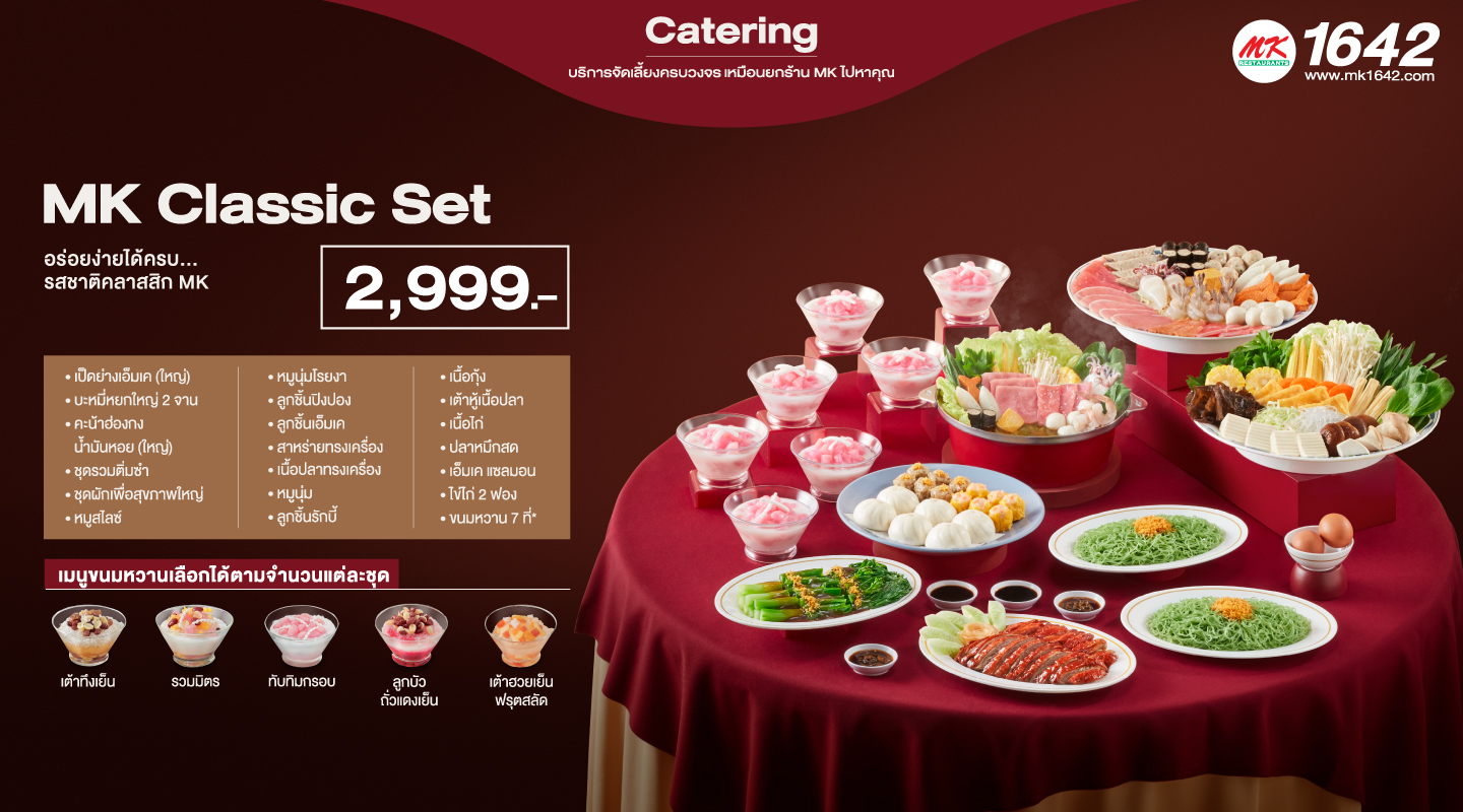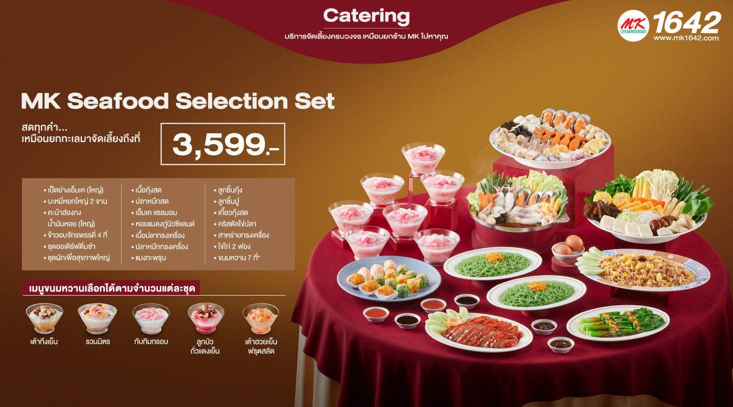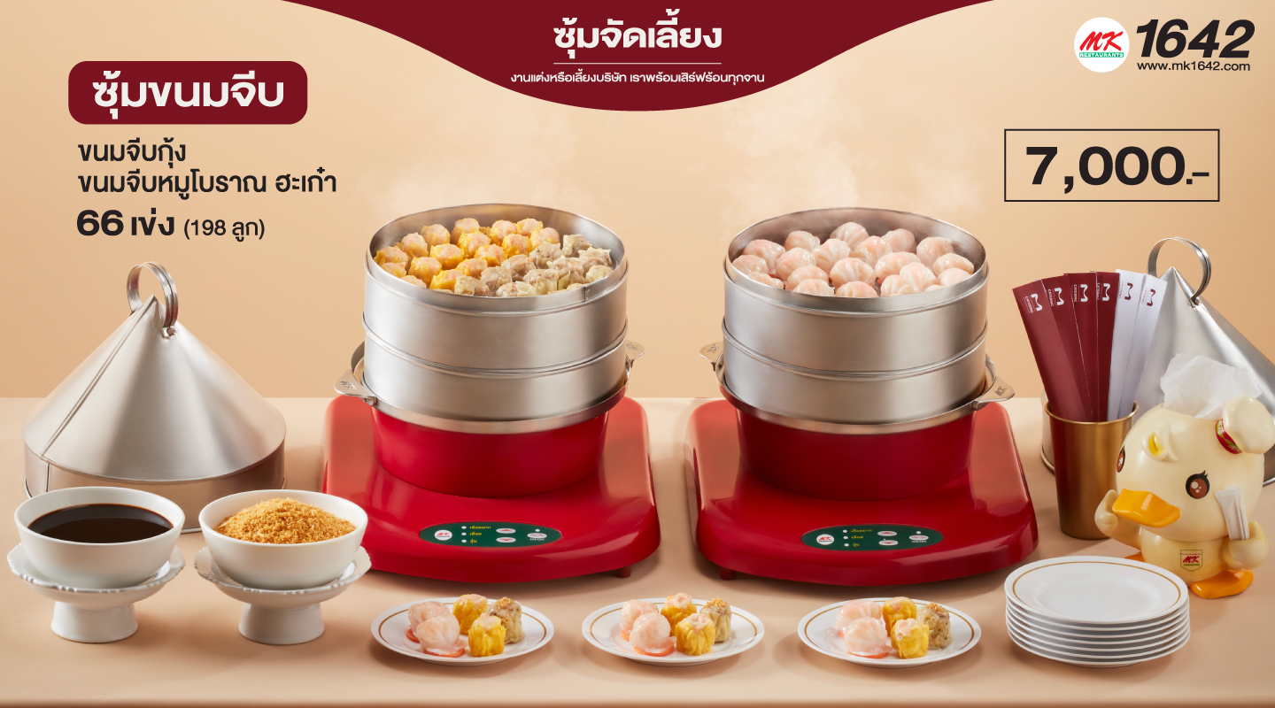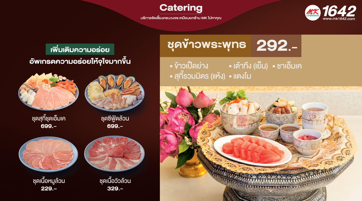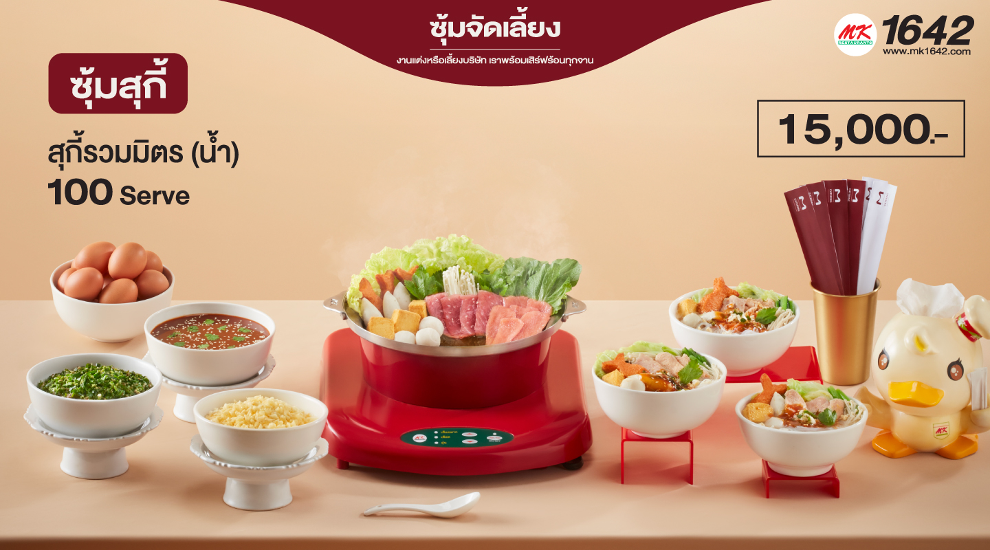 เพียงโทร 1642 เราพร้อมบริการแบบมืออาชีพให้ถึงที่มั่นใจได้ด้วยเมนู วัตถุดิบ รสชาติ และบริการมาตรฐาน MK Restaurants ไม่ว่าจะประชุม ออฟฟิศเลี้ยงปีใหม่ งานครอบครัว หรือจัดใหญ่หลายสิบคน เรามีครบหมดในที่เดียว