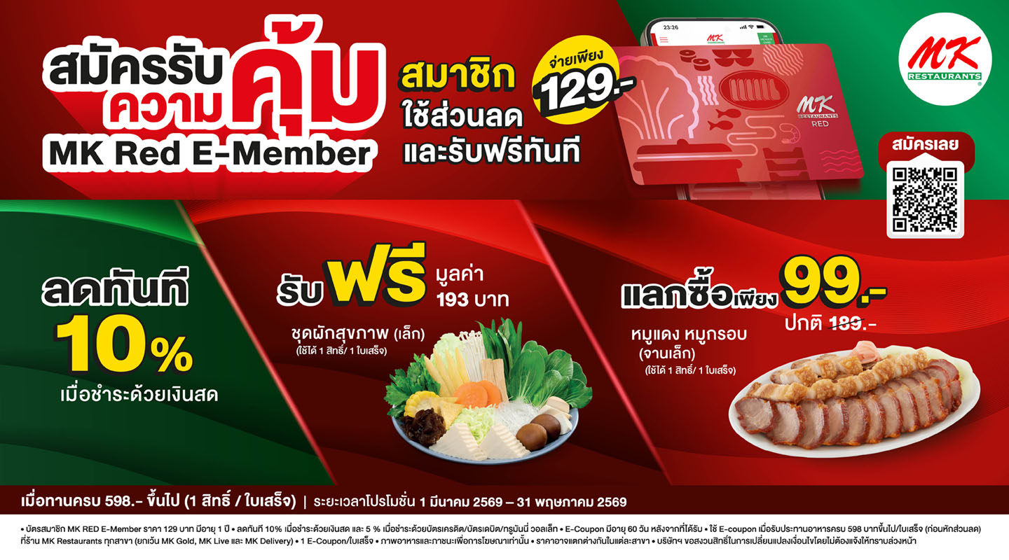 เป็นสมาชิก MK Red E-Member วันนี้ รับฟรี + ใช้ส่วนลดได้ทันที สมัครเพียง 129.-