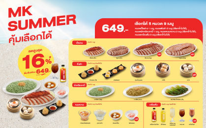 เว็บไซต์นี้มีการจัดเก็บคุกกี้เพื่อการใช้งานเว็บไซต์ที่ดีขึ้น บริษัท เอ็มเค เรสโตรองต์ กรุ๊ป จำกัด (มหาชน) และบริษัทย่อย ขอความยินยอมท่านในการเก็บรวบรวม ประมวลผล และ/หรือเปิดเผยข้อมูลเกี่ยวกับการเข้าเยี่ยมชมและการใช้งานเว็บไซต์ รวมถึงข้อมูลส่วนบุคคลของผู้เข้าใช้บริการ รายละเอียดเพิ่มเติม นโยบายการใช้คุกกี้
